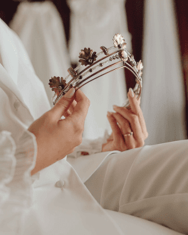 Si buscas enamorarte de una pieza ya creada, explora ‘Tiaras de colección’. Si necesitas algo que nazca contigo (peinado, vestido, velo, estilo), ve a ‘Tiaras a medida’ y cuéntame tu idea.